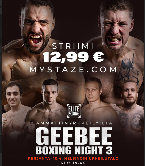 GeeBee Boxing Night 3 -illassa mukana Kenir Aliun ja Samuli Kärkkäisen SM-titteliottelu. Parasta paikan päällä, mutta iltaa voi seurata myös kotikatsomosta.