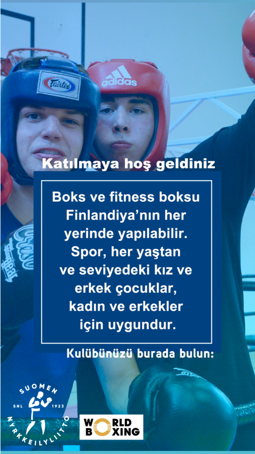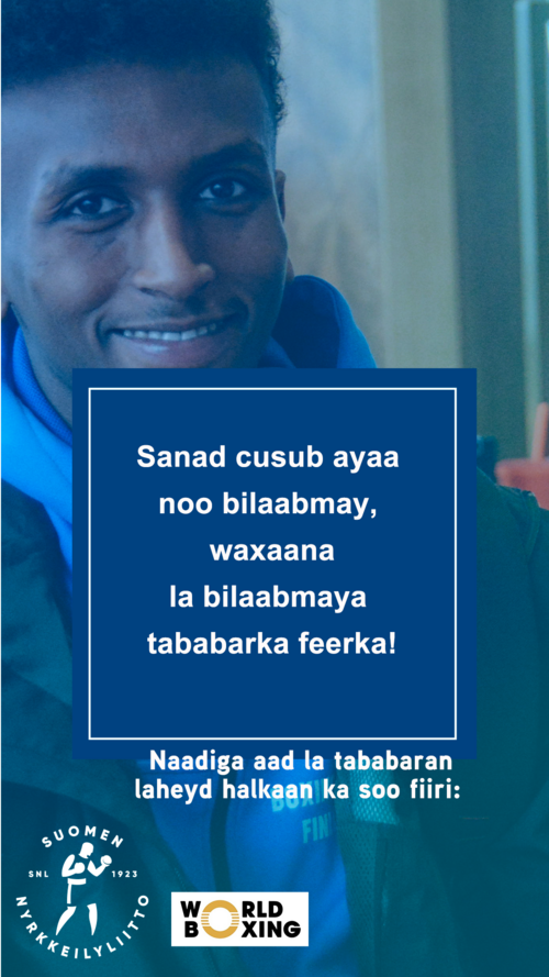 Finbox-perheeseen ovat kaikki tervetulleita. Monikulttuurisuus on nyrkkeilysaleissa ihan tavallinen juttu. Jotta yhä useampi löytäisi mukaan nyrkkeilysaleihin, olemme kääntäneet somemainoksia eri kielille. Mainokset ovat vapaasti seurojen käytössä.